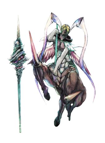 "Dark soldier and servant of the wicked god. Master of "wind-based" attributes. Its huge half-man, half-horse physique alone strikes fear in the hearts of most. Habitat: Interdimensional Crack"