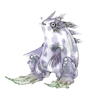 "An amphibious creature that lives in and around old ruins. Unlike others of its kind, it contains no poison. But it tastes awful!