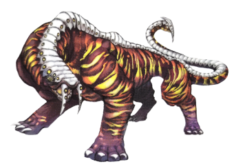 "This fearsome beast lives in forests. Its enormous fangs are used solely for combat. Swallows its prey in one gulp. Habitat: Sadal Suud Frontier"